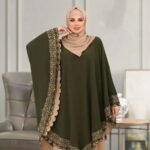 Women’s Premium White & Dark Green Two Piece Color and Pattern: The main color scheme is white with a prominent dark teal or deep green pattern. The pattern features large, intricate floral and swirling motifs, along with smaller, scattered star-like elements, particularly on the lower part of the tunic and pants. Style: It consists of a long tunic (kameez) with three-quarter sleeves, matching patterned pants (salwar), and a plain white headscarf (dupatta or hijab). The tunic has a relaxed fit and the pants appear to be a comfortable, straight-leg or slightly tapered style.